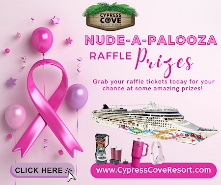We’re thrilled to kick off our Annual Nude-A-Palooza Charity Benefit Tribute Band Concert series here at Cypress Cove! Get ready for an unforgettable day filled with incredible live music, a welcoming, clothing-optional atmosphere, and the kind of good vibes that only Nude-A-Palooza can deliver. From the first note to the final encore, we can’t wait to celebrate with you! Don't forget to pick up your Nude-A-Palooza event gear HERE.