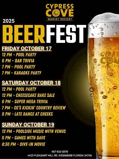 Add in pool parties, karaoke, cheesecake bake sale, live music, and a late-night dance, and you’ve got the perfect recipe for a weekend you’ll never forget. Grab your friends, grab a pint, and join us for a cheers-worthy celebration of beer, games, and community at Cypress Cove!