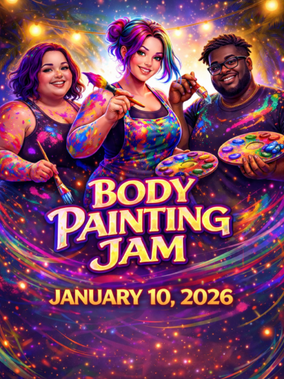 Mandi has invited an incredible lineup of artists for this jam, including "HUGGI" (Kahlil Caesar), a Caribbean-born artist with over 30 years of artistic experience, and "Chevy" Johnson, winner of the 2025 Cypress Cove Body Painting Competition, and an accomplished competitor and amazing artist in the body painting world, with more talented artists anticipated.