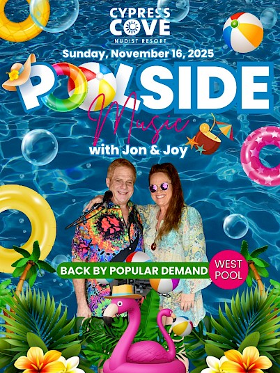 Join us at the West Pool on Sunday, November 16, 2025, as we welcome Jon and Joy for another unforgettable afternoon of Poolside Music. If you’ve been to Karaoke lately, you already know what a treat this dynamic duo brings—fun vibes, favorite tunes, and that perfect touch of sunshine energy we all love.