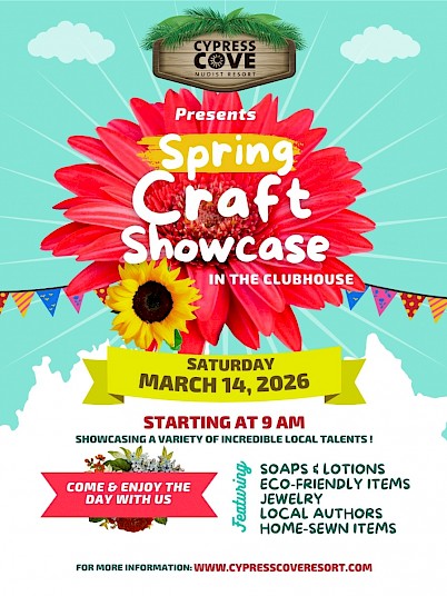 Join us on Saturday, March 14th, from 9:00 AM to 2:00 PM in the Clubhouse for our annual Spring Craft Fair! Come browse a wonderful selection of handmade goods, unique gifts, seasonal décor, and creative treasures crafted by talented local vendors. It’s the perfect opportunity to shop small, support artisans, and find something special to welcome the spring season.