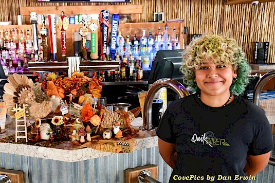 A beautiful Thanksgiving display and a beautiful smile at Cheeks pool bar.