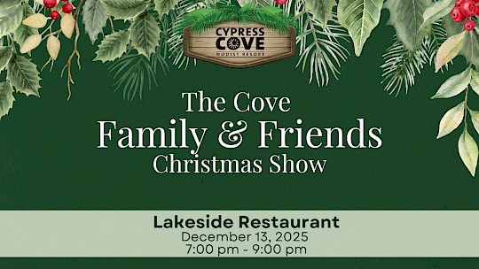 Veterans Day CeremonySaturday, November 8 On Saturday, November 8, we warmly invite you to join us in commemorating Veterans Day at Cypress Cove Nudist Resort. This special event is dedicated to honoring veterans, their cherished family members, and all those who hold the Armed Services close to their hearts. Please gather with us at 4:00 pm by the flagpole for a heartfelt tribute to the valiant individuals who have selflessly served in the United States Armed Forces. Cypress Cove’s Veterans Day presentation promises to be an unforgettable celebration, shining a well-deserved spotlight on the men and women who have made incredible sacrifices for our nation. Following the tribute, join us on the deck of Lakeside at 4:30 pm for a casual wine and cheese reception, where we can continue our reflections and conversations in honor of our veterans. As we embark on the season of Thanksgiving, let us begin by expressing our profound gratitude to these heroic members of our military. Your presence and support would mean so much as we come together to honor their dedication and service