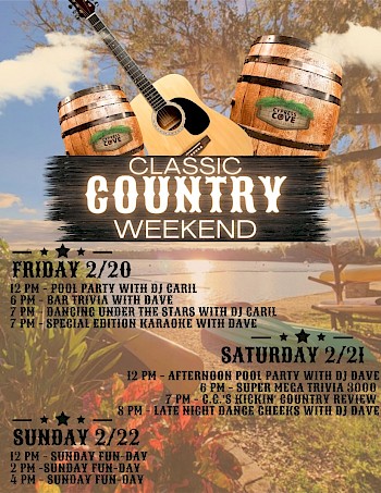 Wednesday, February 18 Thursday, February 19 Friday, February 20 Saturday, February 21 Sunday, February 22 *Weather Permitting Club Activities - Visitors Welcome!Maybe your idea of a fun vacation is learning a new skill or meeting new people. Cheeks Dining This WeekClick Here for this week's menuCheeks Kitchen Hours Breakfast: Cheeks Kitchen Hours Lunch/Dinner: Cheeks Bar Hours: *Menu Subject to Change Due to Availability* Next Week's Entertainment & Events: