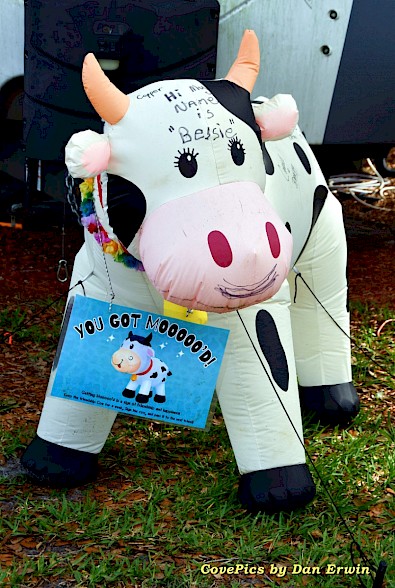 Bessie, the You Got Mooo'd cow, visited many of the snowbird sites over the winter and is now looking to the return of the summer campers.