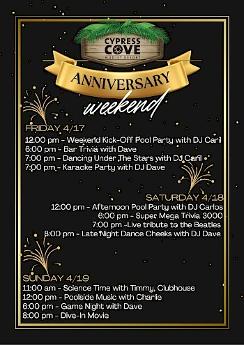 Join us as we celebrate another incredible year at Cypress Cove—where unforgettable memories, lasting friendships, and carefree moments come together in one beautiful place.