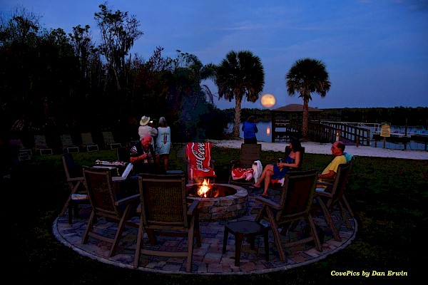 Drumming up the full moon campfire is a fun event at Cypress Cove.