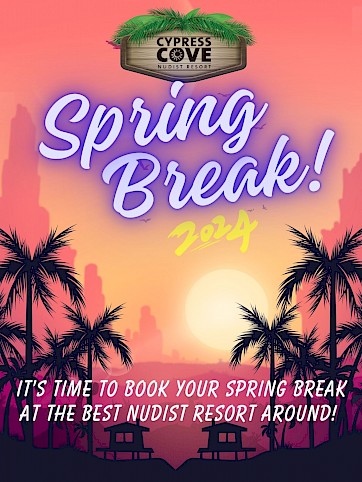 The Big Nude Boat 2024 is right around the corner. Cypress Cove Nudist Resort is proud to serve as your pre- and post-cruise assistant. Why not fly into Orlando, stay at The Cove for a few nights, let us tend to your luggage, and we'll even do the driving?