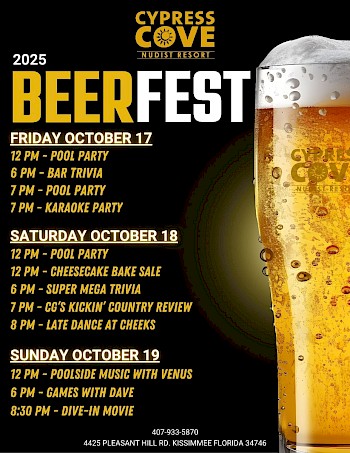 Add in pool parties, karaoke, cheesecake bake sale, live music, and a late-night dance, and you’ve got the perfect recipe for a weekend you’ll never forget. Grab your friends, grab a pint, and join us for a cheers-worthy celebration of beer, games, and community at Cypress Cove!