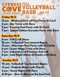Nude-A-Palooza 2025 Tickets!Mark your calendars for October 25th, when Cypress Cove transforms into a live music paradise featuring incredible tribute bands that will blow you away. Tickets are on sale now! And don’t forget... Epic raffle prizes are on the line, too! Raffle tickets will go on sale soon, so check back often. Stay tuned for additional event details. Until then, get ready to sing, sway, and rock your birthday suits off at Nude-A-Palooza 2025! Cheeks Renovation Notice – Starting Monday, Sept. 15Beginning Monday, Cheeks will be undergoing a light renovation. Don’t worry — the bar and grill will remain open and ready to serve you throughout the project! The only change is that tap beer will be temporarily unavailable, but we’ll have plenty of bottled favorites stocked so you can still enjoy your time with us. ’60s Weekend at the Cove!Step into a time of peace, love, and rock ’n’ roll as we celebrate the swinging ’60s! This groovy weekend is packed with poolside fun, live music, trivia, karaoke, and plenty of chances to dance the night away under the stars. Break out your bell-bottoms, tie-dye, and flower power spirit... because the Cove is bringing back the sights, sounds, and soul of a decade that changed the world. The highlight of the weekend is Lakeside Live’s ’60s Dance Party with Doc Fu & The Soul Surgeons, guaranteed to have you grooving all night long. And on Sunday evening, float into nostalgia with our Dive-In Movie at the East Pool... a classic suspense film where the skies aren’t quite as friendly as you’d hope. Toga WeekendStep back into ancient times and celebrate the ultimate Cypress Cove tradition...Toga Weekend! From poolside parties and live music to hilarious trivia, karaoke, and late-night fun...it's a Roman holiday. Don’t miss the highlight of the weekend: the always-entertaining toga costume contest at Lakeside Restaurant, where creativity and laughter rule the night. Grab your sheet, channel your inner Caesar (or Cleopatra!), and join us for a weekend of classic Cove fun! Super Mega Championship WeekendThink you’ve got what it takes to be crowned the Cove’s ultimate trivia champion? Gather your smartest friends and join us for the Super Mega Trivia Championship Weekend! The competition kicks off Friday night with back-to-back preliminary rounds that will test your knowledge on everything from pop culture to history. On Saturday, the excitement ramps up with Round 3 and the high-stakes Championship Finals, where the brightest minds battle it out for bragging rights and glory. In between the trivia action, enjoy pool parties, live music, and late-night dancing to keep the energy going. Whether you’re playing or just cheering on your favorites, it’s a weekend of fun, laughter, and serious brainpower you won’t want to miss! Fall Volleyball Bash WeekendGet ready for one of Cypress Cove’s most exciting weekends of the season—our Fall Volleyball Bash! The courts will be alive with friendly competition all weekend long, while the rest of the resort buzzes with live entertainment, themed parties, poolside music, the fall craft show, trivia challenges, and even a dive-in movie under the stars. Whether you’re here to play in the tournament, cheer from the sidelines, or simply soak up the festive fall vibes, this is a weekend you won’t want to miss! If you want to find out more about playing in this tournament, find out more here. Harvest Craft FairCelebrate the season of abundance with us at the Harvest Craft Fair on Saturday, October 4th, from 9 AM to 2 PM at the Clubhouse! Stroll through a vibrant marketplace filled with handcrafted treasures perfect for autumn and beyond. Discover cozy crocheted creations, unique jewelry, local artwork, festive wreaths, essential oils, handmade soaps, and one-of-a-kind holiday ornaments. Many of our talented vendors will debut new seasonal items just for this fair—don’t miss your chance to take home something truly special! For more information on reserving a table, please contact Suzanne Gouin at (315) 523-4339. Vendors: To add to the fun, show off your fall spirit with your favorite autumn shirt or festive harvest colors! Nudist News Outside the Cove See what's making headlines in nudist news around the world. Check out our social media channels to see what's happening. Have You Seen Us Lately?